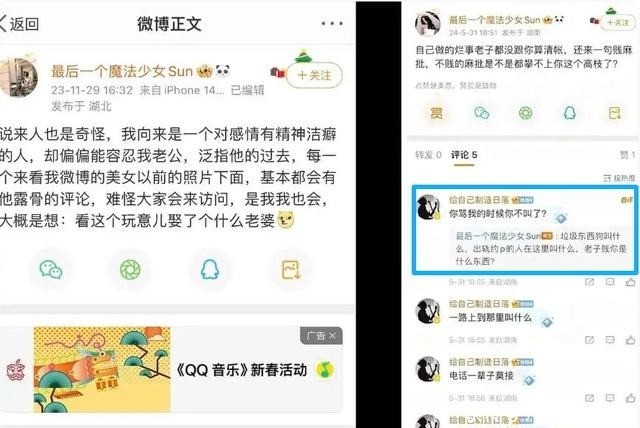 当时她在网上与邓钧公开对骂,邓钧不仅没有半点愧疚,反而在评论区骂她贱麻批。