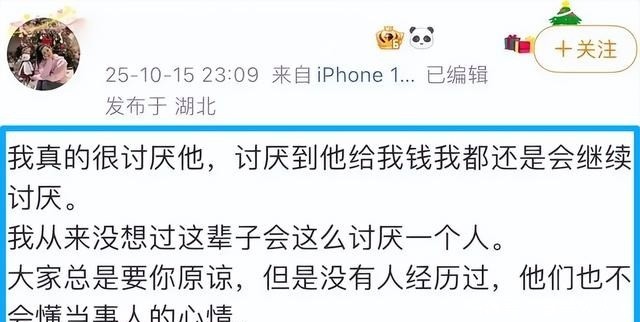 就在今年10月,罗晶还发布过一条动态:我真的讨厌他,讨厌到他给我钱我都会继续讨厌。