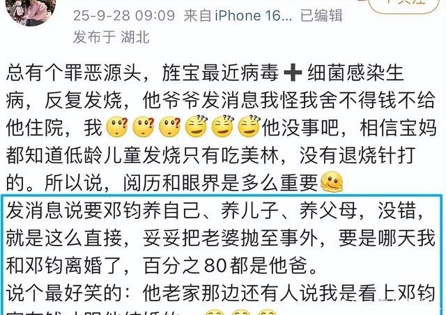 网上那些关于邓钧出轨的指控,很多都是女儿在气头上发出的,并不完全属实。