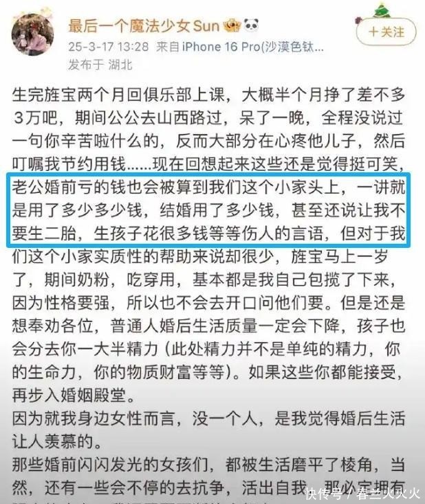 她说自己生完孩子两个月就回去工作,半个月赚三万块,却被公公教育不要乱花钱。